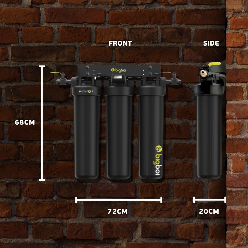 The D-IONIZR2 has a 3-stage filter set up. The first filter is a composite carbon filter which is designed to remove the hardness levels of your water. This also adds an extreme benefit to the D-IONIZR filter as the water flowing through it will be much cleaner and prolonging the life span of your cartridges. We have seen a 20% increase of your DI cartridge with this set up.