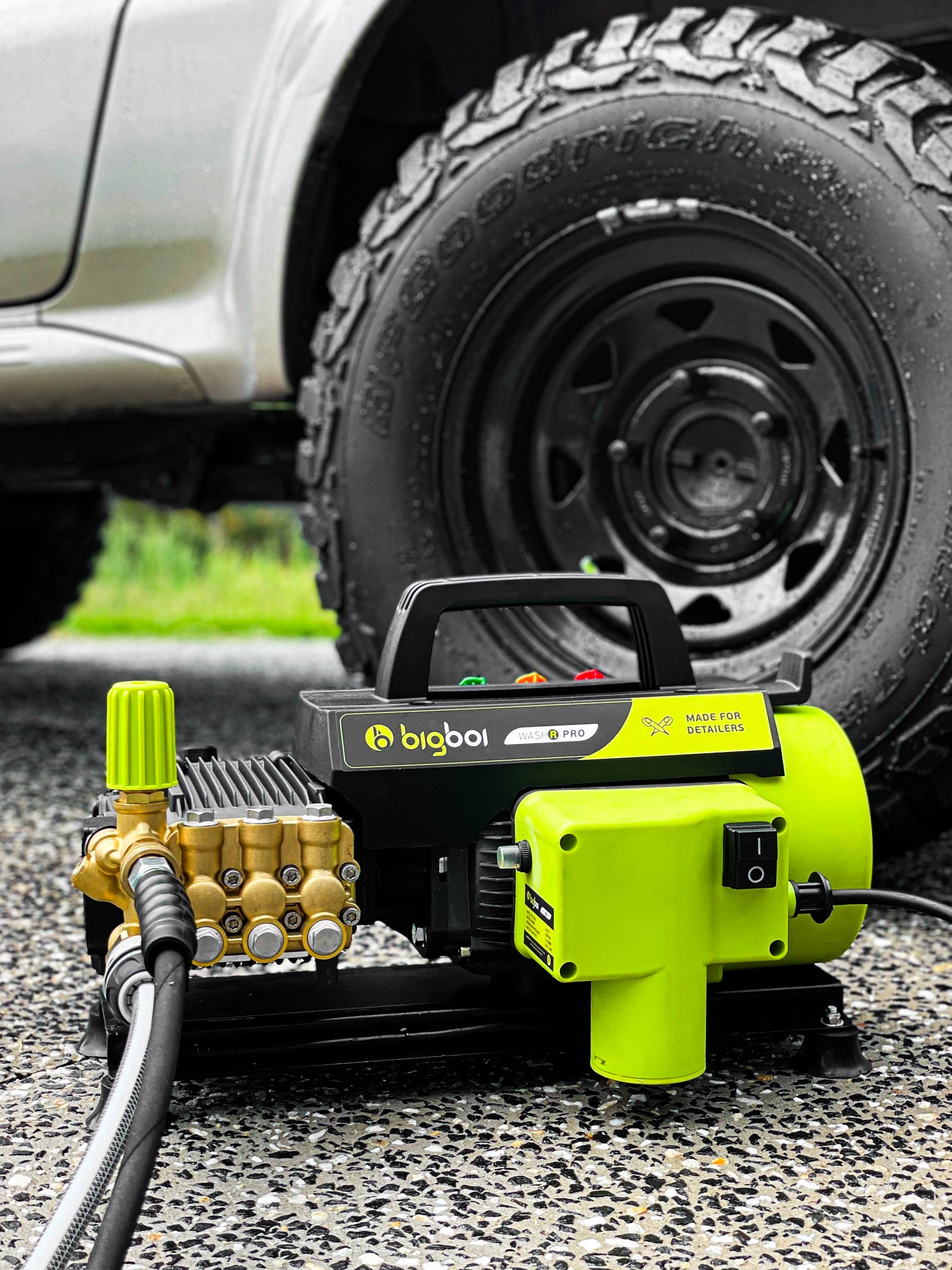 All pressure washers are not made equal. With a handful of expensive and awkward attachments, general use pressure washers might get the job done. But only the bigboi WashR Pro is designed and tuned specifically for automotive detailing.